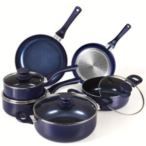 YOUKADA | 10-Piece Pots And Pans Set Nonstick, Aluminum Nonstick Ceramic Cookware Set With Lids, Induction, Oven, Gas, Stovetops Compatible For Family Meals