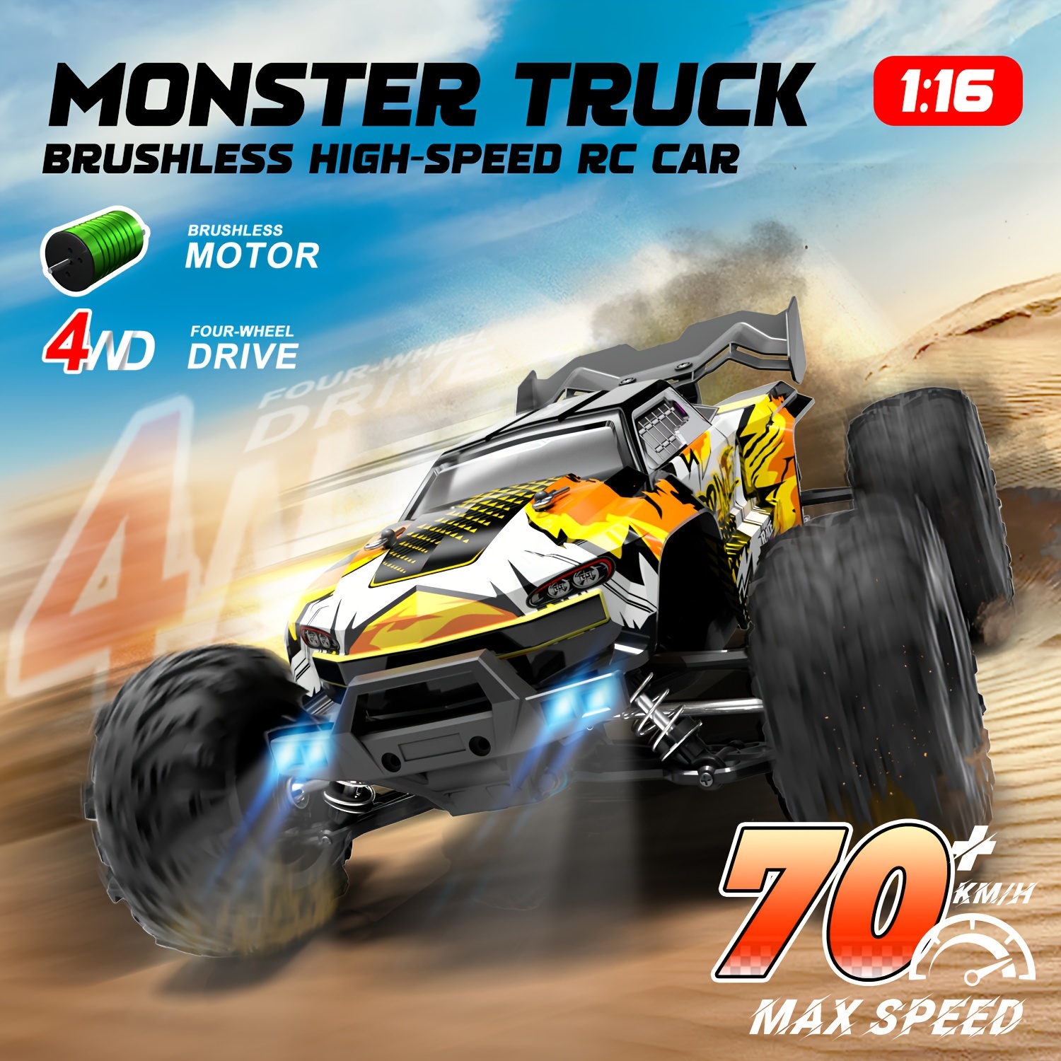 1:16 Scale 70Km/h Super High Speed Remote Control Four-wheel Drive Off-road Vehicle Remote Control Climbing Car Brushless Motor Youth Adult Racing Toy The Most Ideal Holiday Gift, Birthday Gift