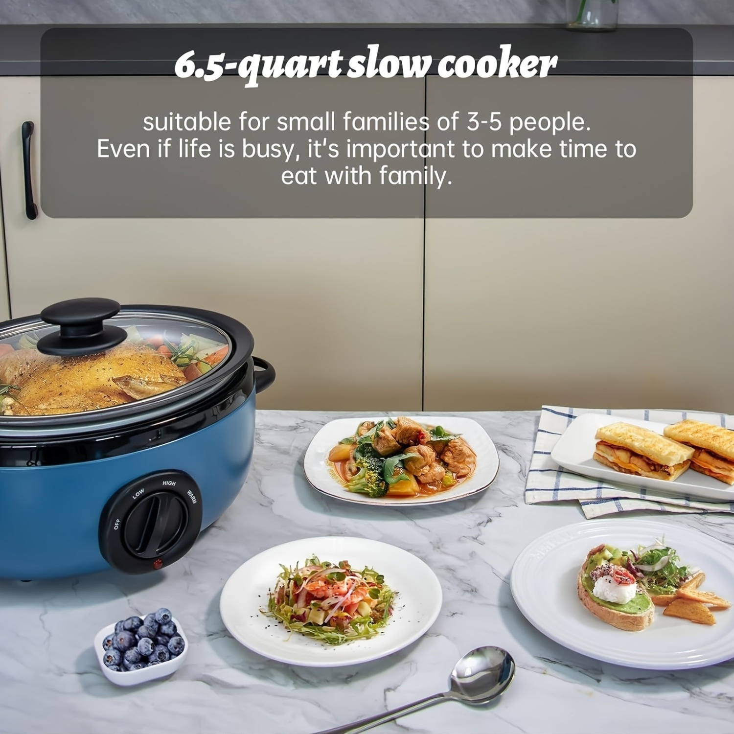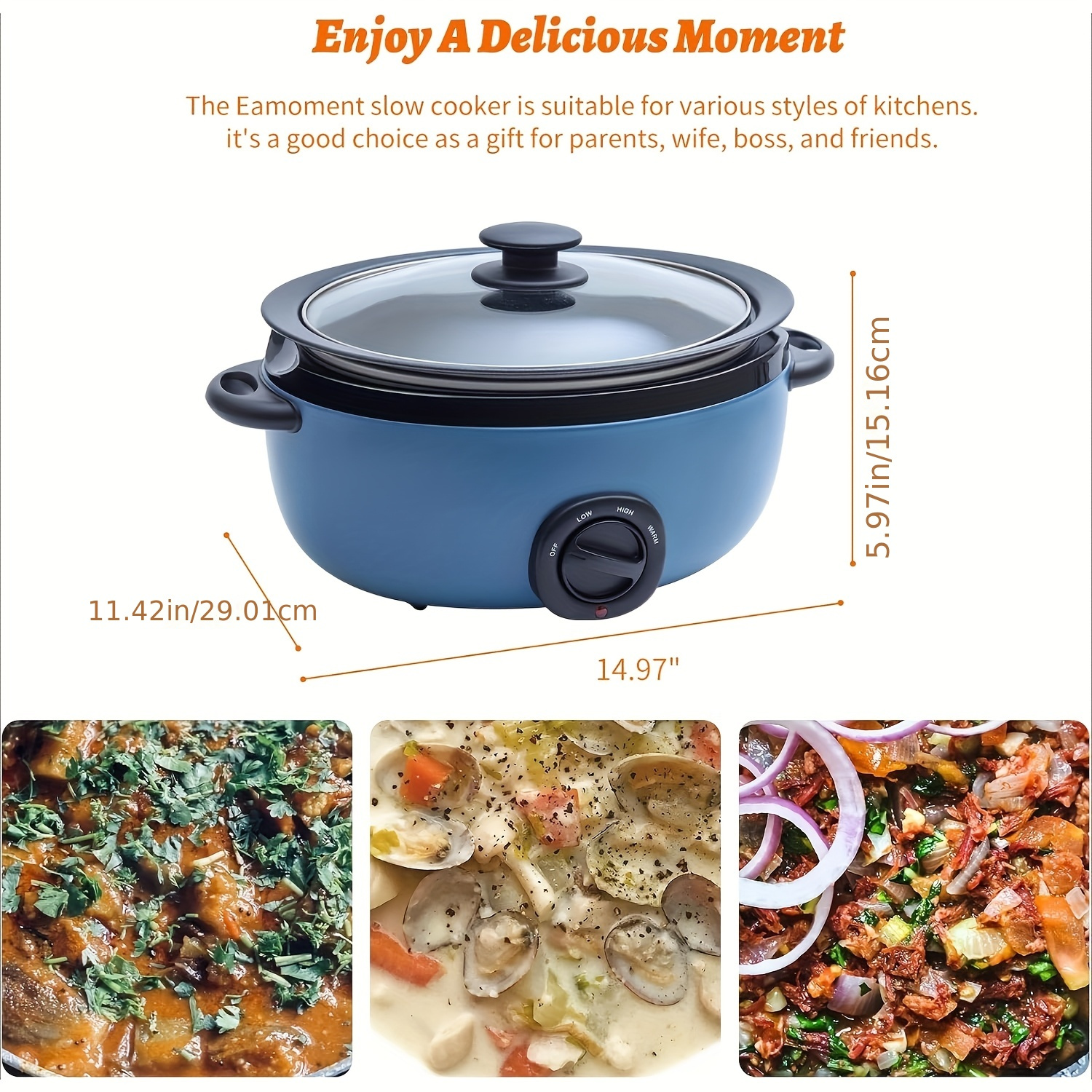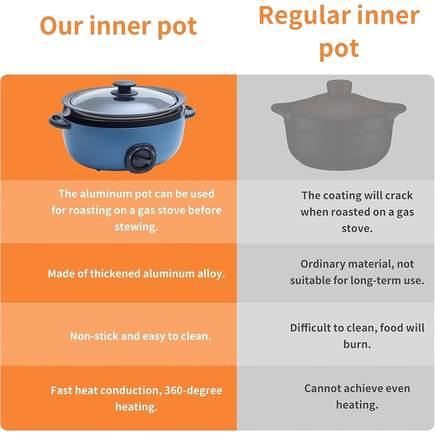 1pc 6.5 Quart Slow Cooker with Aluminum Sear/Sauté Stew Pot – Stovetop Safe, Dishwasher Safe, Glass Lid, Adjustable Temperature, Food Warmer, 110V/220V, US Plug