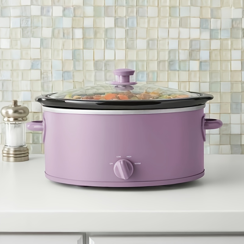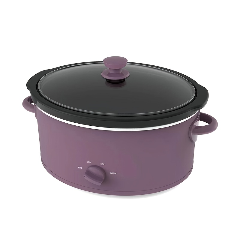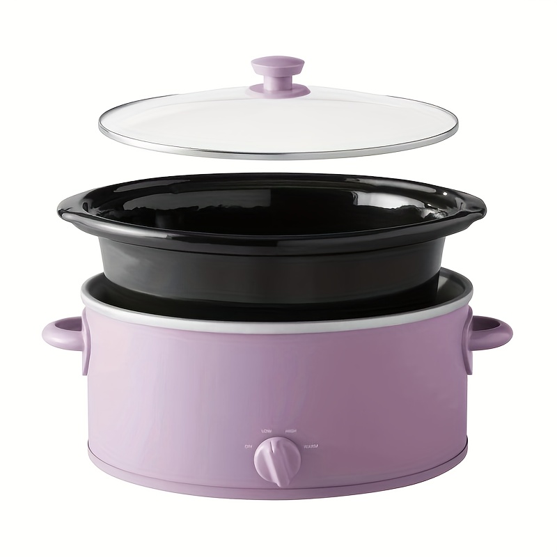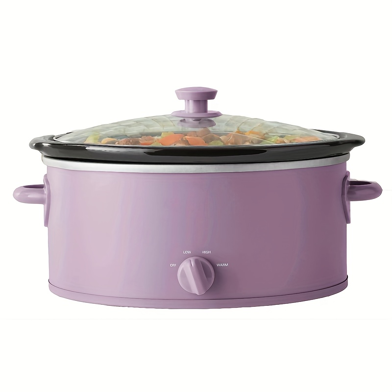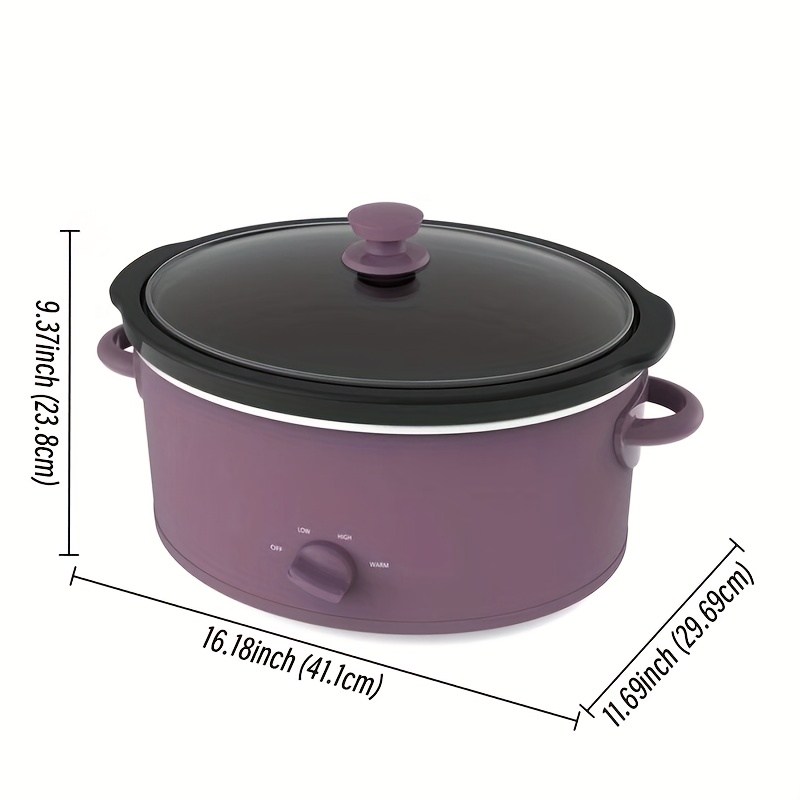 1pc Purple Ceramic Slow Cooker Pot with Glass Lid and Stoneware Crock – 6 Quart, Non-Stick, Stovetop Compatible, Easy to Use, Cool-Touch Handle for Large Portions & Meal Prep