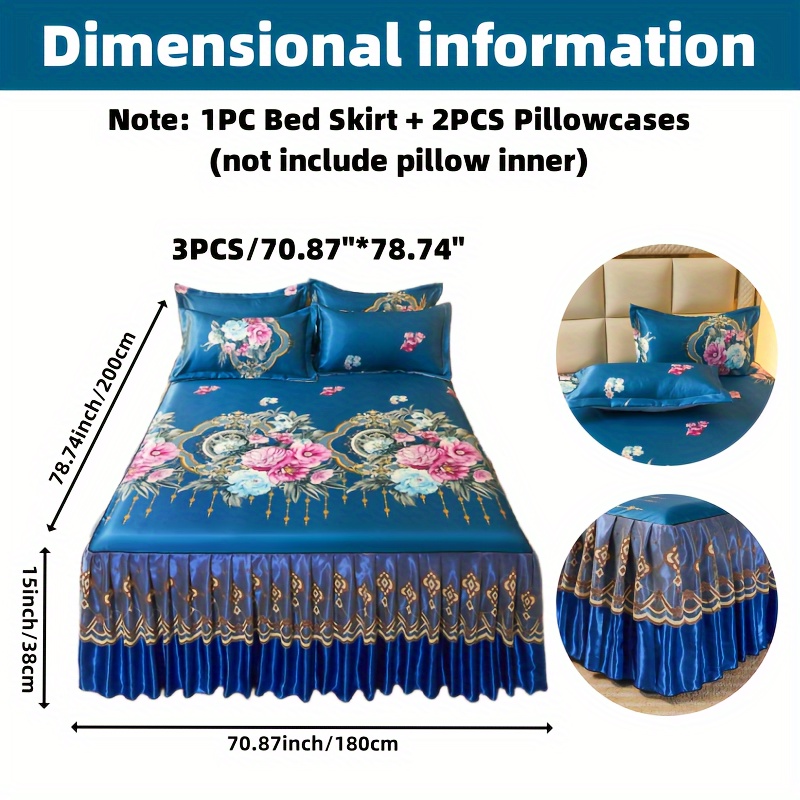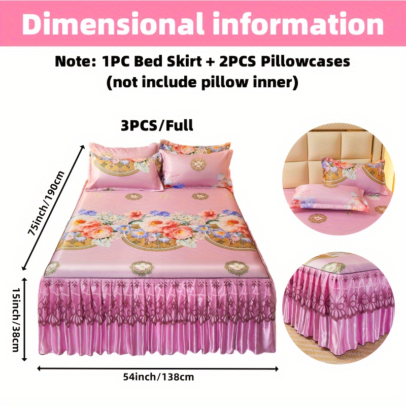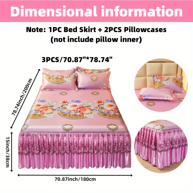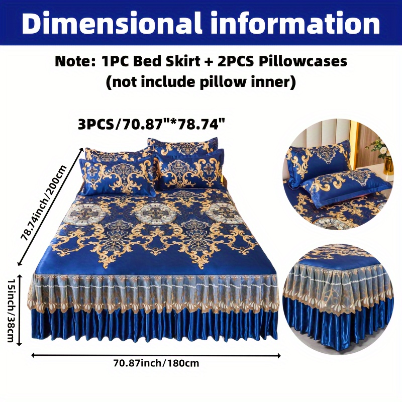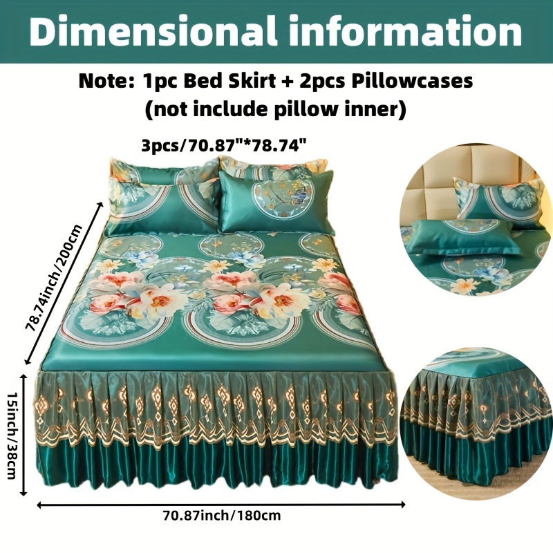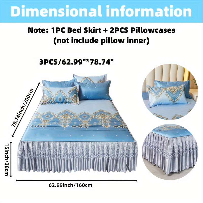 2PCS/3PCS New Full Lace Hem Bed Skirt, Jacquard Ice Silk Mat, Softness and Comfort, Folding, Machine Wash, Mattress Cover, Bedding Set, Bedroom Guest Room Bedding, Single, Double, Multiple Sizes1PC Bed Skirt + 1PC/2PCS Pillowcases, Without Core