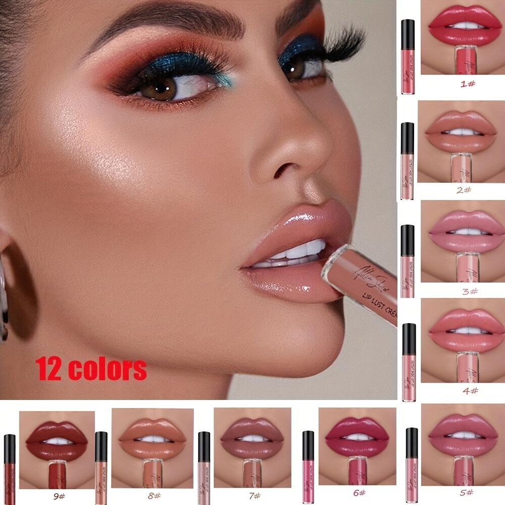 6pcs Creamy Liquid Lipstick Smooth Lip Gloss Velvet Lip Glaze Highly Pigmented Lipsticks Waterproof Nude Lip Plumper Makeup Gift for Women and Girls