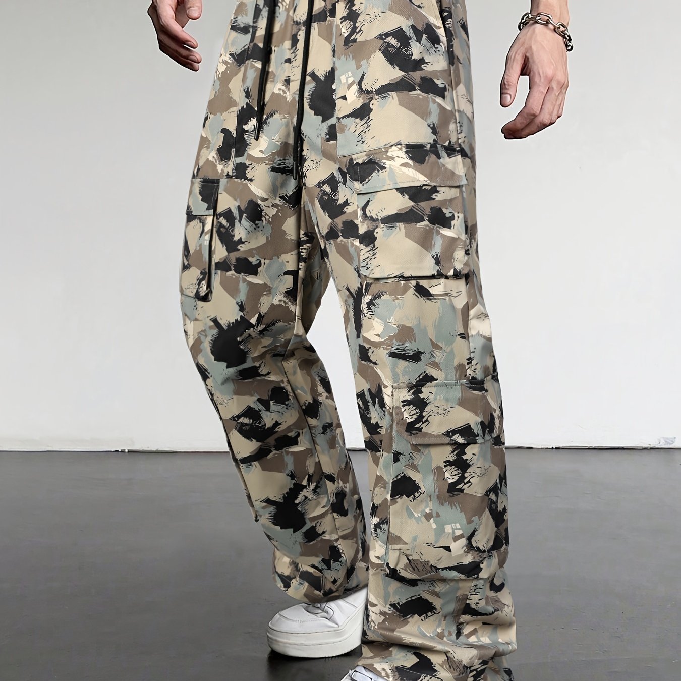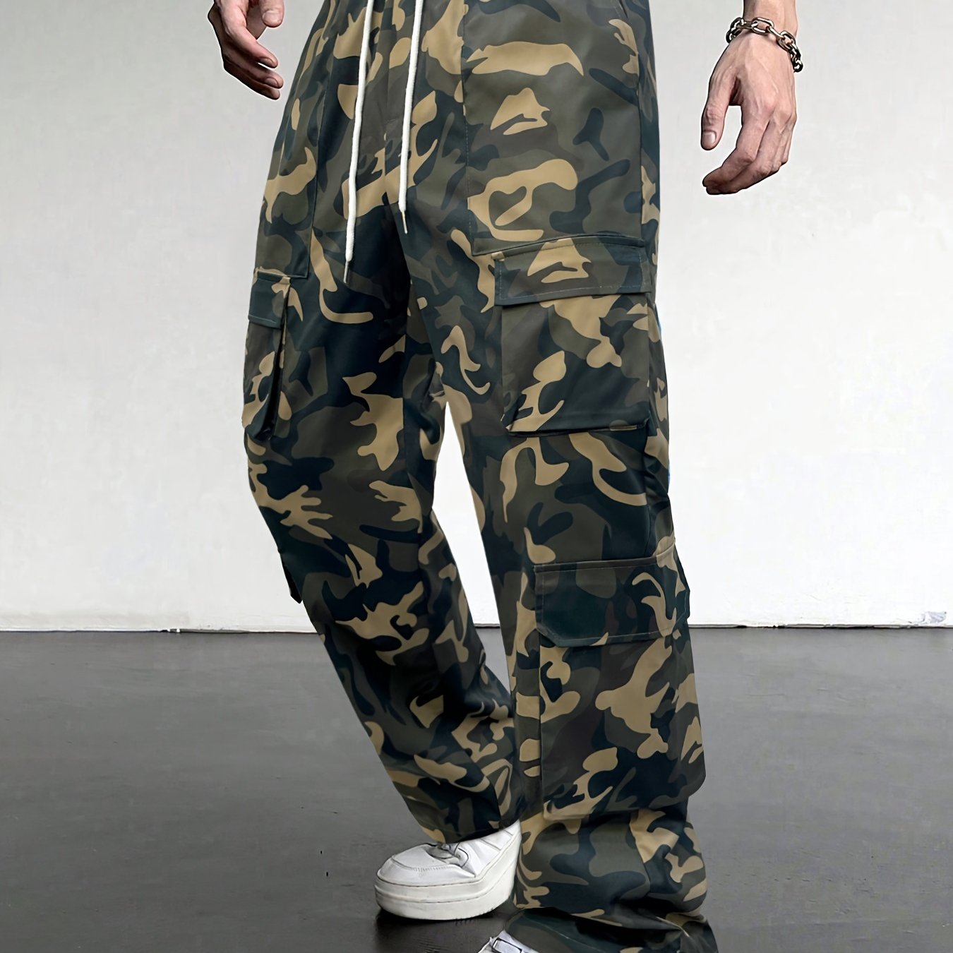 Casual Camouflage Men's Loose Fit Drawstring Cargo Pants With Multiple Pockets, All Seasons Outdoor, Leisure And Work