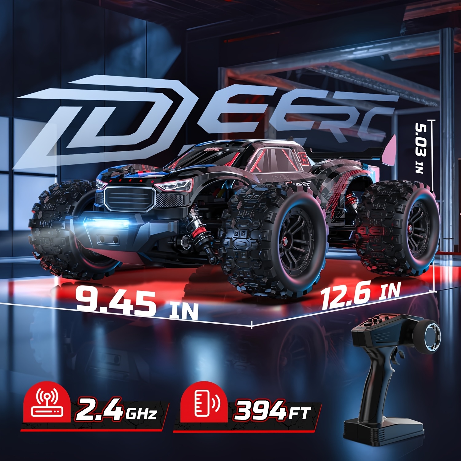 DEERC 1:14 Scale High-Speed Brushless RC Car for Adults – Max 46+ MPH, Off-Road Truggy with Durable All-Metal Drive Train & Reinforced Chassis, 7 Lighting Modes, Remote Control, Dual 3S Lipo Batteries Included – Black, Night Driving Rc|Sporty Appearance|M