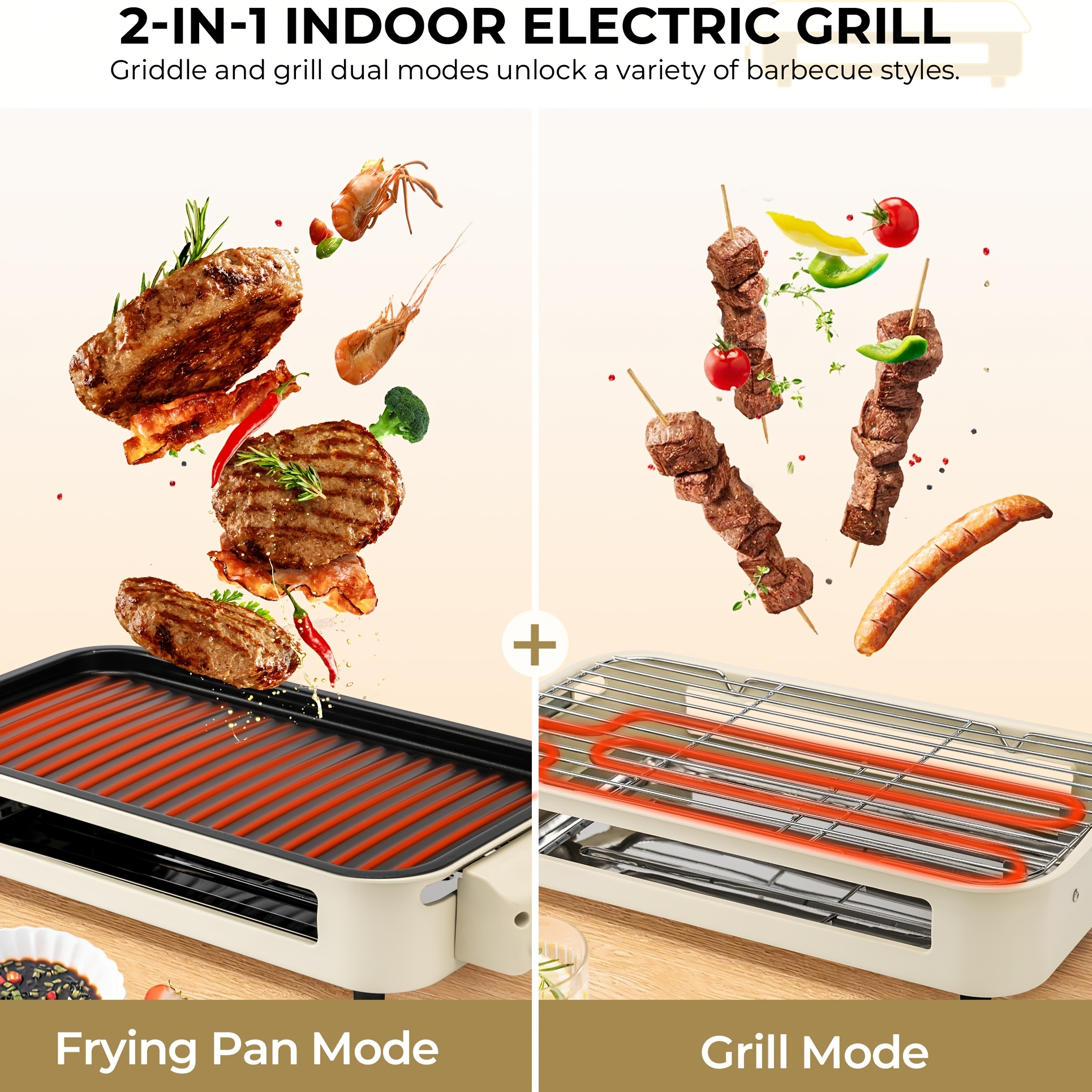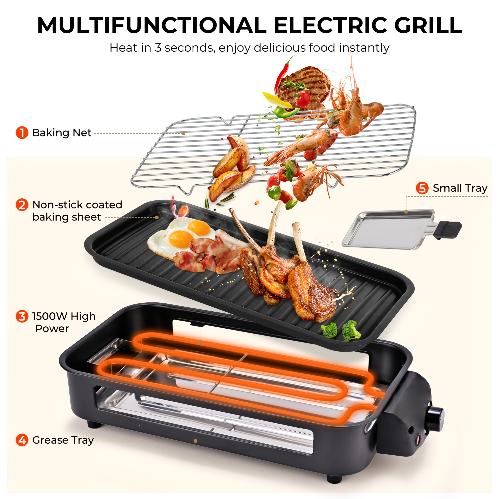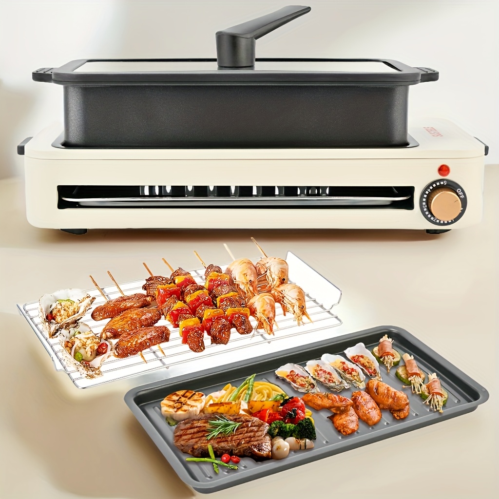 Electric Grill For Kitchen, Indoor, Smokeless, With Removable Non-Stick Plate, BBQ Portable, 1500W, Safe For Dishwasher