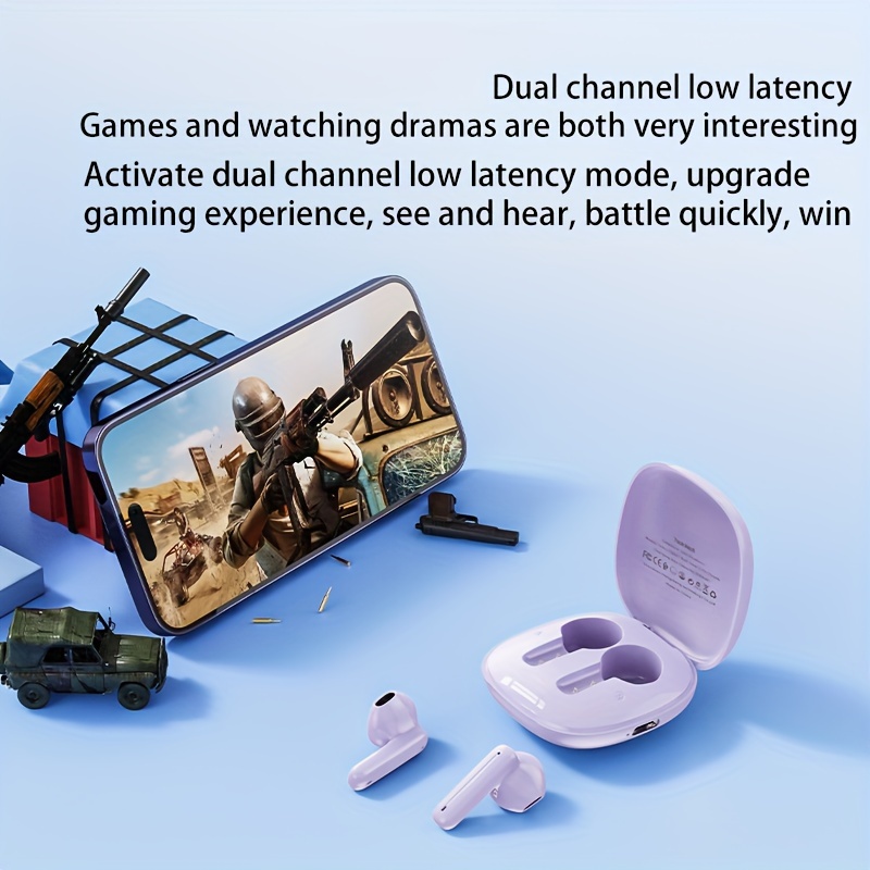Wireless Gaming Earbuds with Autonomous EQ Switching, Touch Control Volume, Condenser Mic, 150mAh Rechargeable Battery, Plastic Semi-open-back Earphones with Noise Cancellation, Compatible with Smartphones, Non-Waterproof, Cable-Free Charging Case