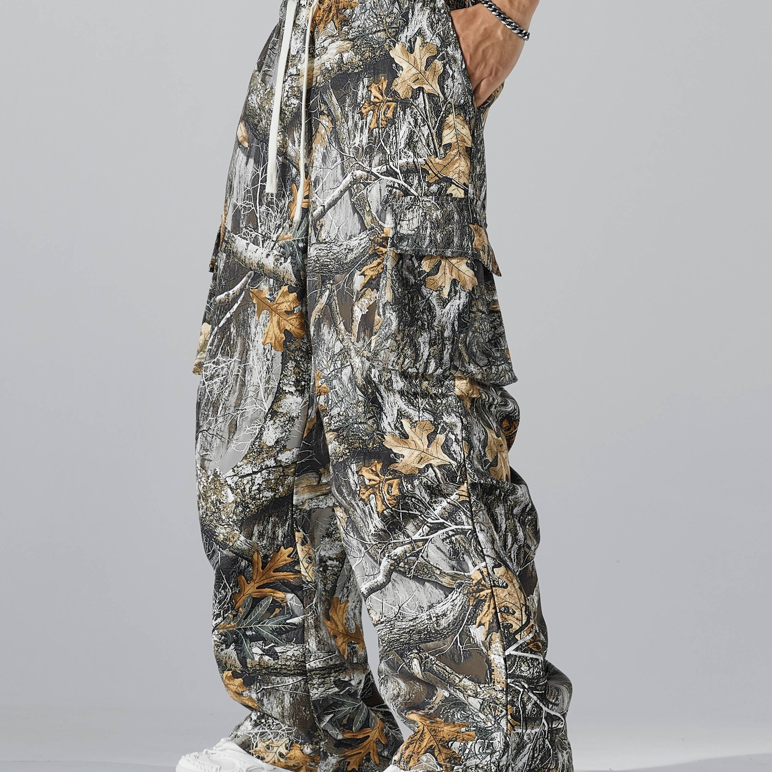 Men's All-Season Tropical Print Cargo Pants – Breathable, Waterproof & Sleek with Drawstring Waist and Multiple Pockets