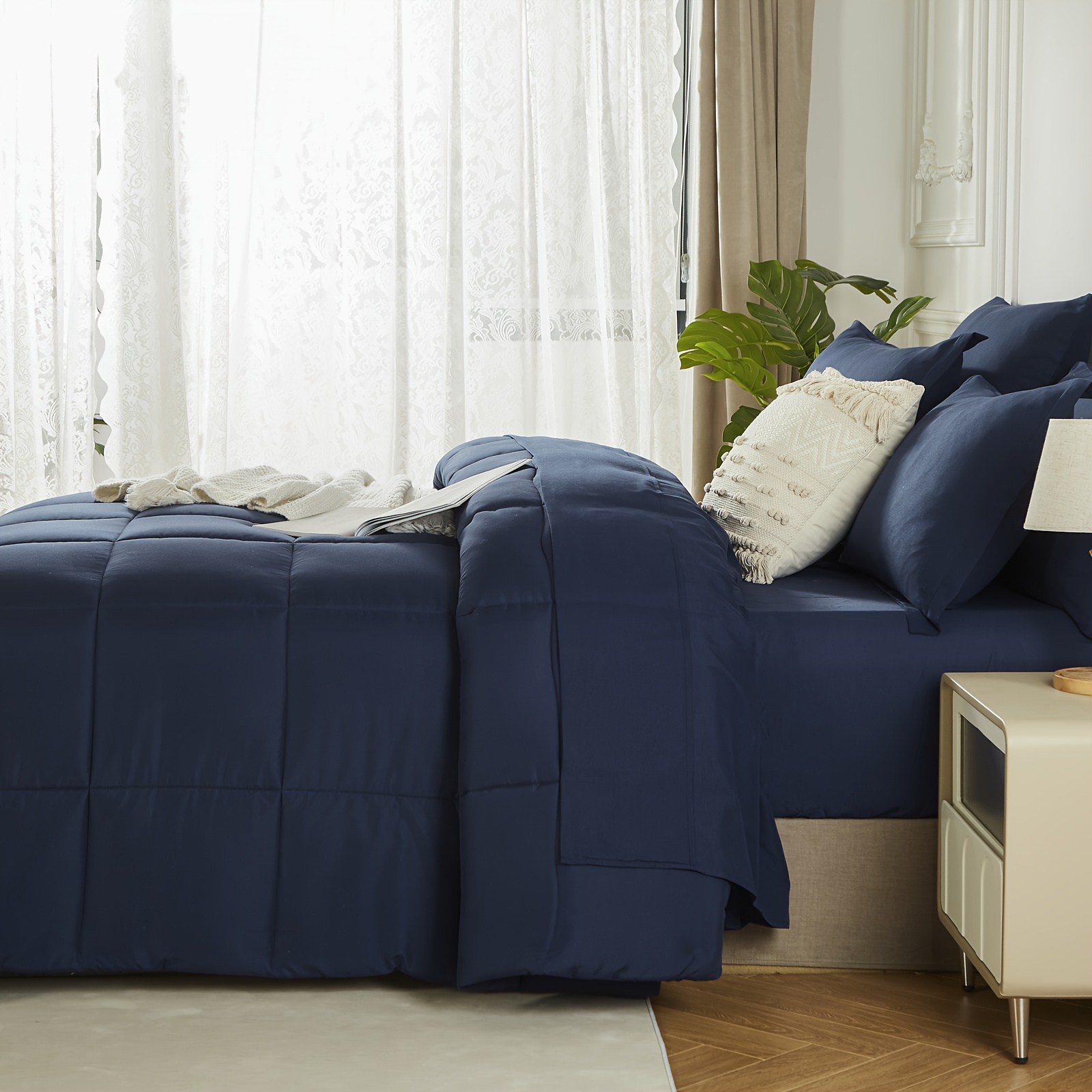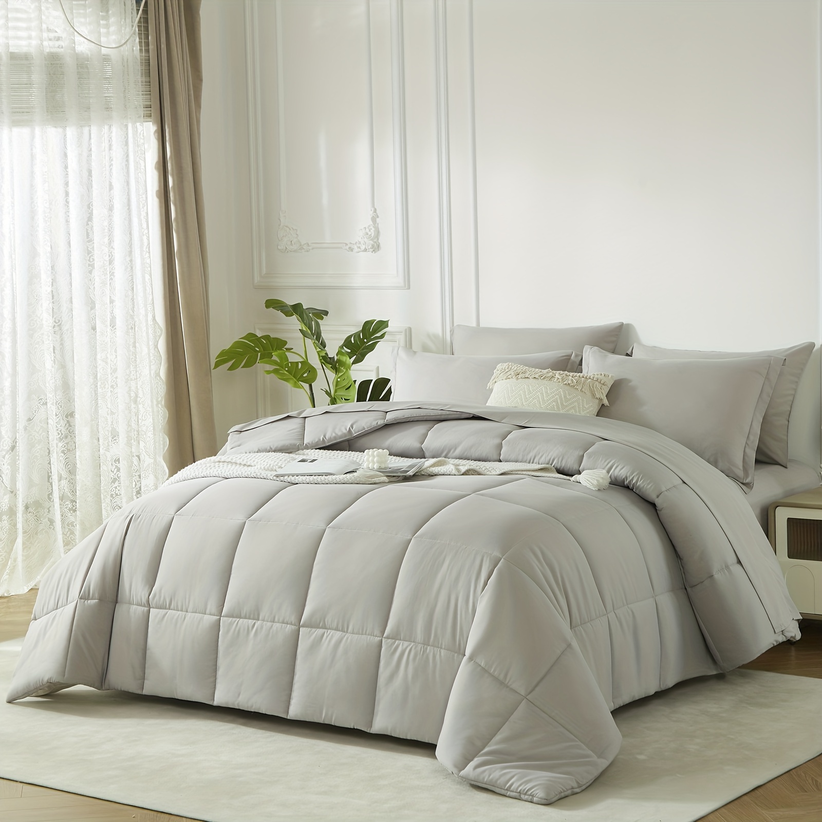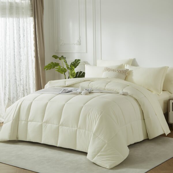 Square Solid Color Comforter Set 7-piece, Elegant, Natural Bedding Set Including Comforter, Flat Sheet, Fitted Sheet, 2 Pillowcases And 2 Pillowcases.