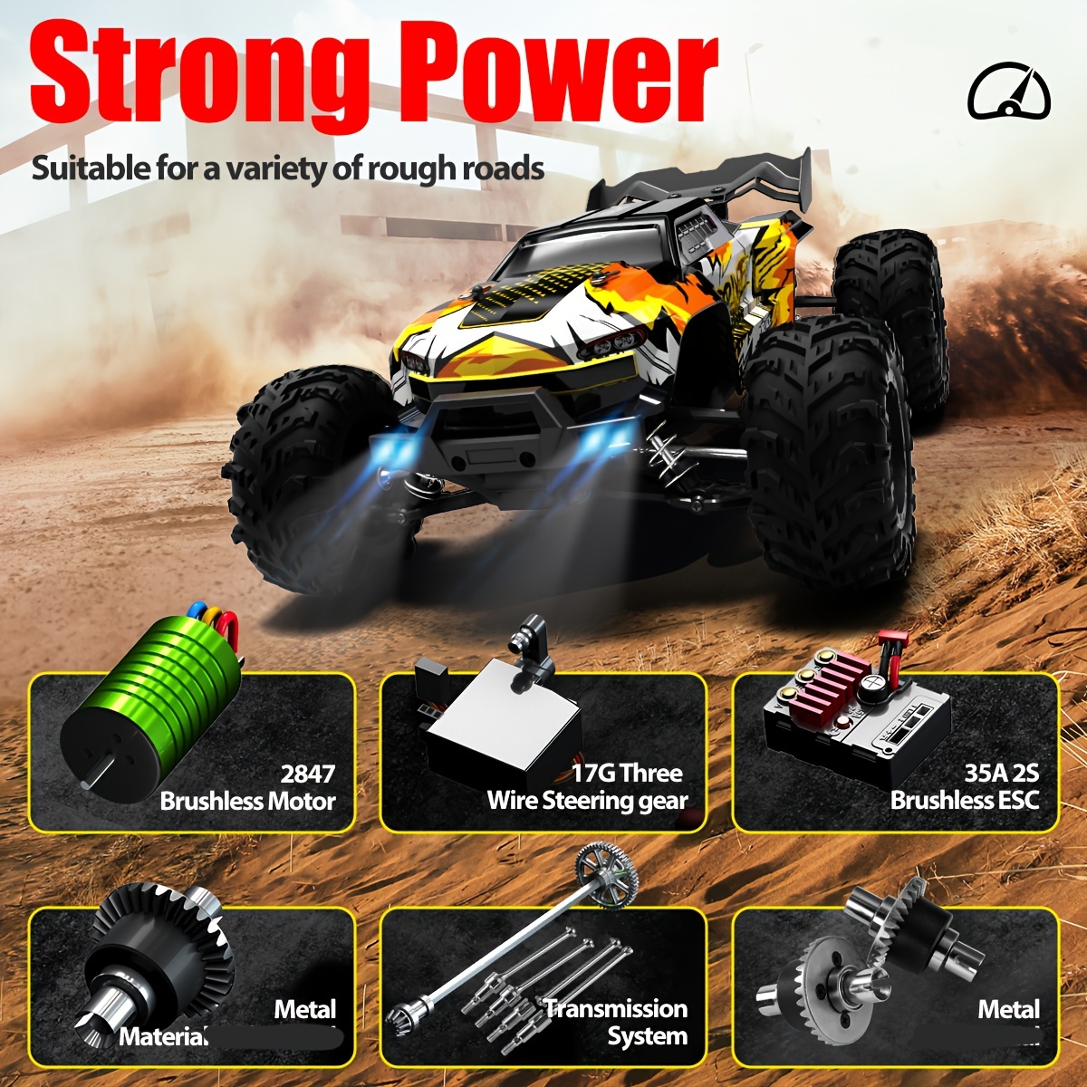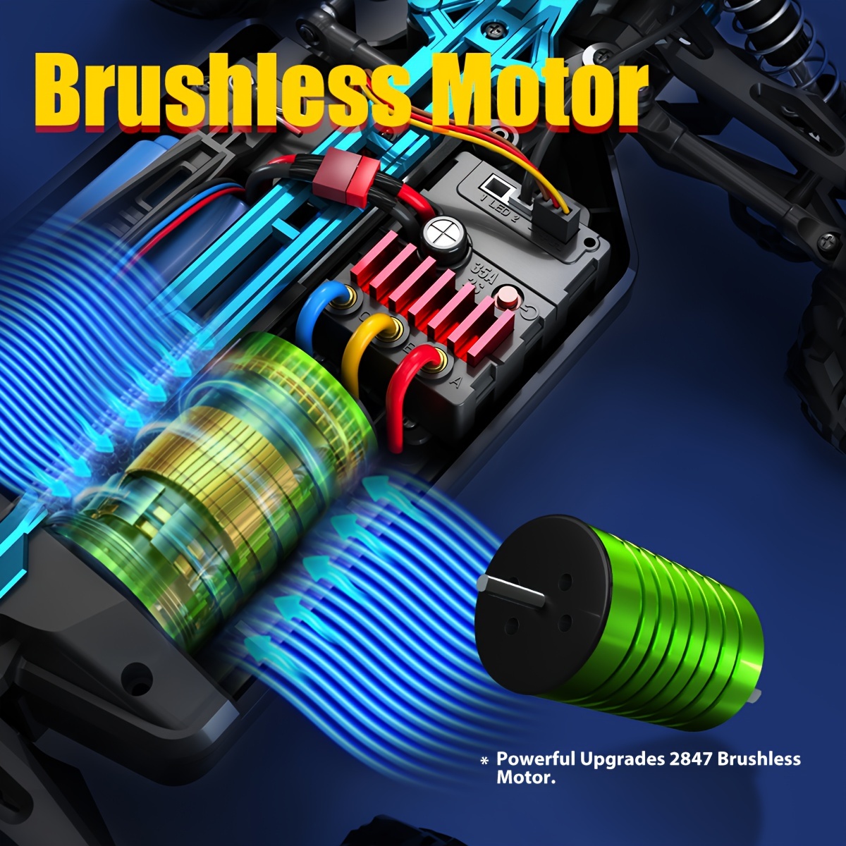 Top speed of 70KM/H, 2.4G remote control, 1:16 four-wheel drive high-speed brushless off-road vehicle, designed with a simulation structure, suitable as a birthday gift, Christmas gift, best selling