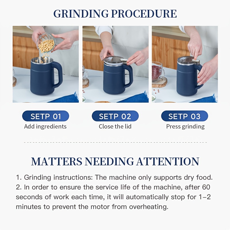 HomeKitchen Accessories Versatile Electric Flour Mill – One-Touch Start, Fine Powder Grinder for Grains & More, 12500 RPM, Square Shape, US Plug, Square Shape