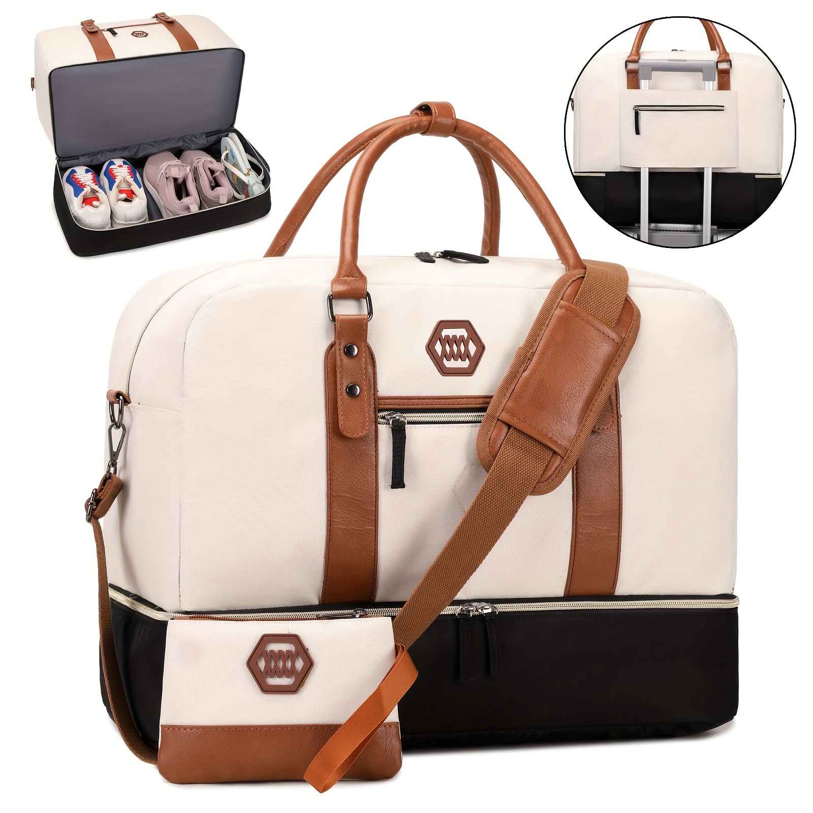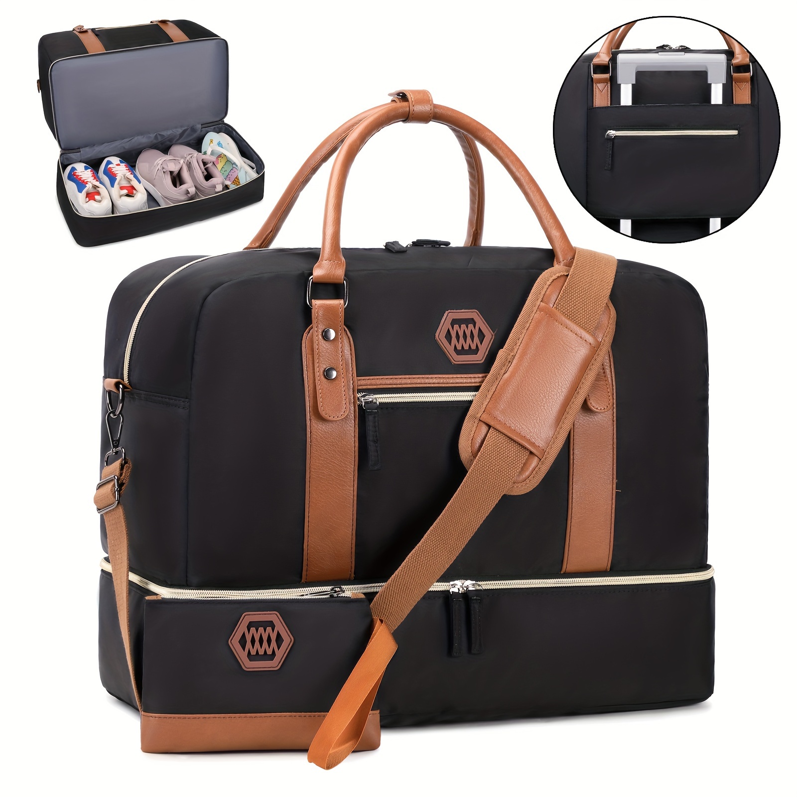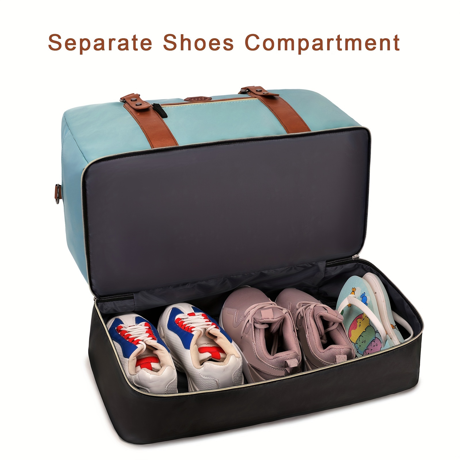 Women's Weekend Bag, Casual Travel Duffel With Shoe Compartment, Ladies Gym Carry-on Luggage, Adjustable Shoulder Strap