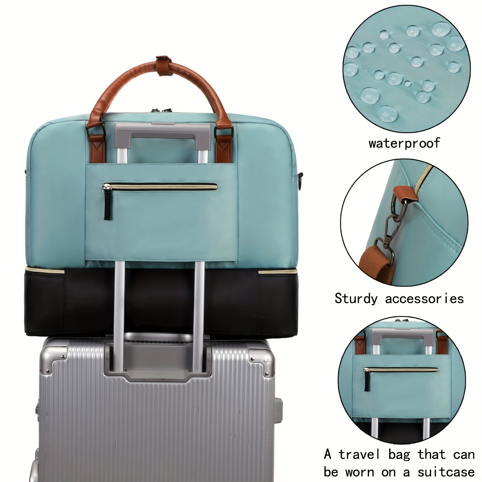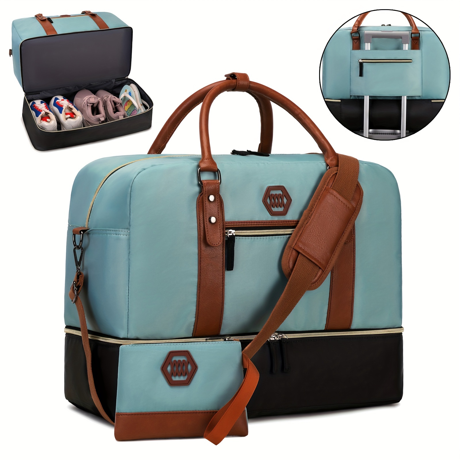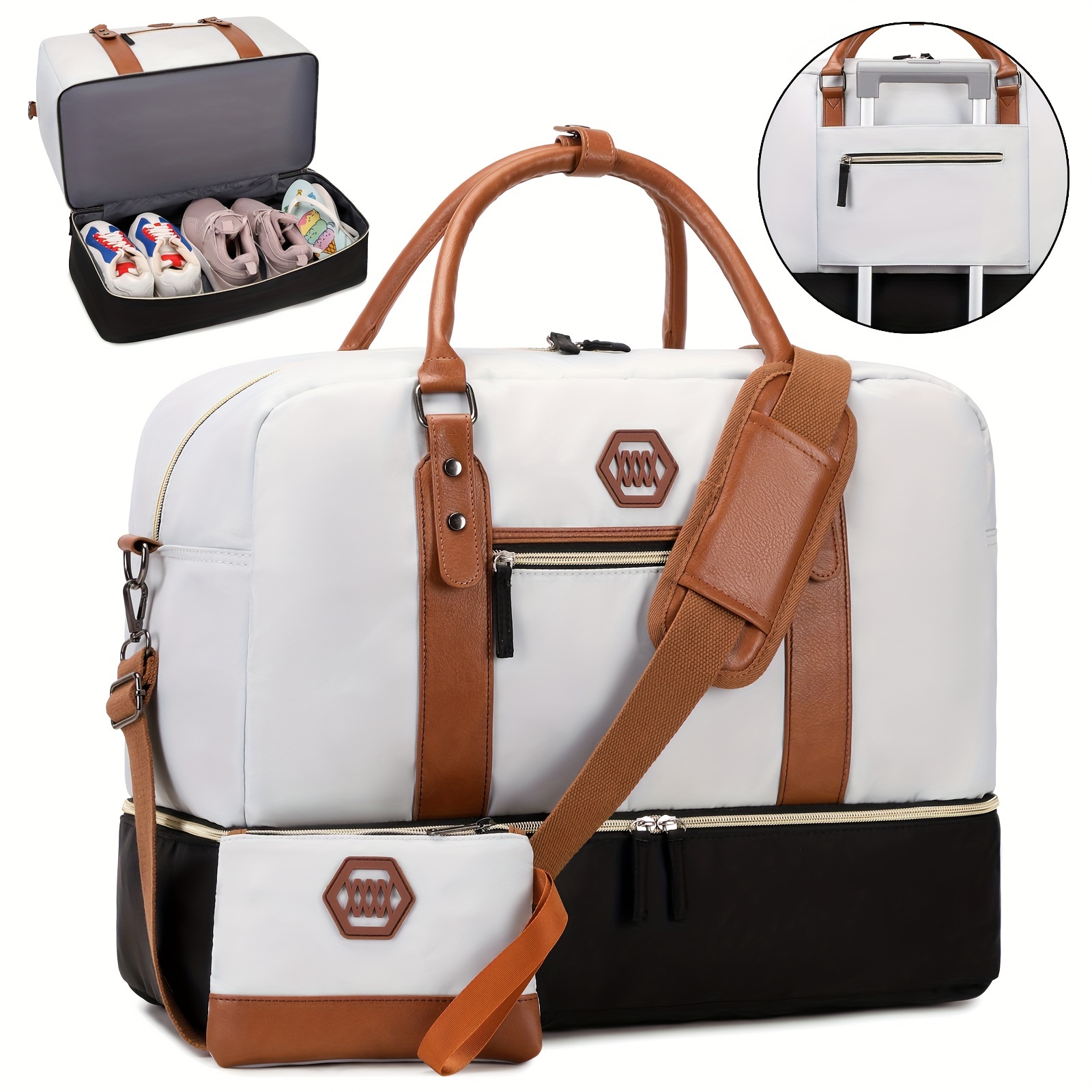 Women's Weekend Bag, Casual Travel Duffel With Shoe Compartment, Ladies Gym Carry-on Luggage, Adjustable Shoulder Strap